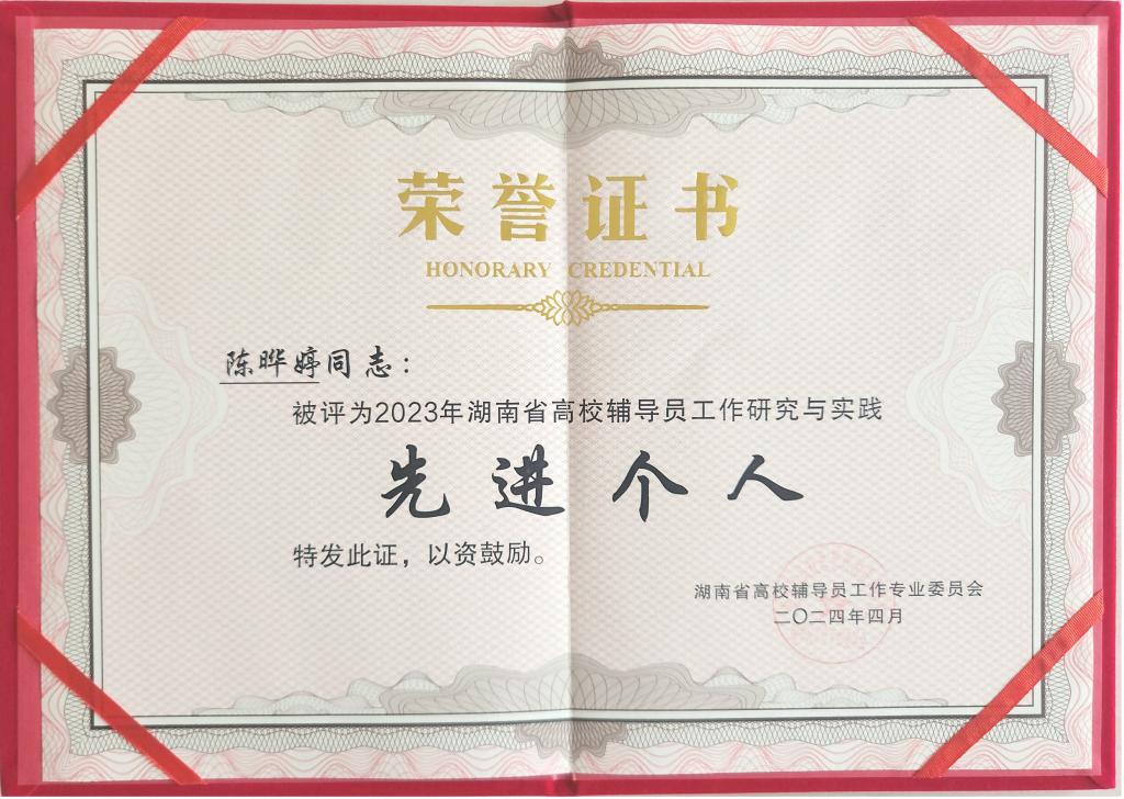 4月8日,湖南省高校辅导员工作专业委员会、湖南省高校学生工作专业委员年会在吉首大学召开,年会公布了2023年全省高校(含高职院校)先进单位和先进个人评选结果,我校获评“湖南省高校辅导员研究与实践先进单位”,土木与建筑工程学院陈晔婷、材料科学与工程学院邓佩然获评“湖南省高校辅导员工作研究与实践先进个人”荣誉称号。