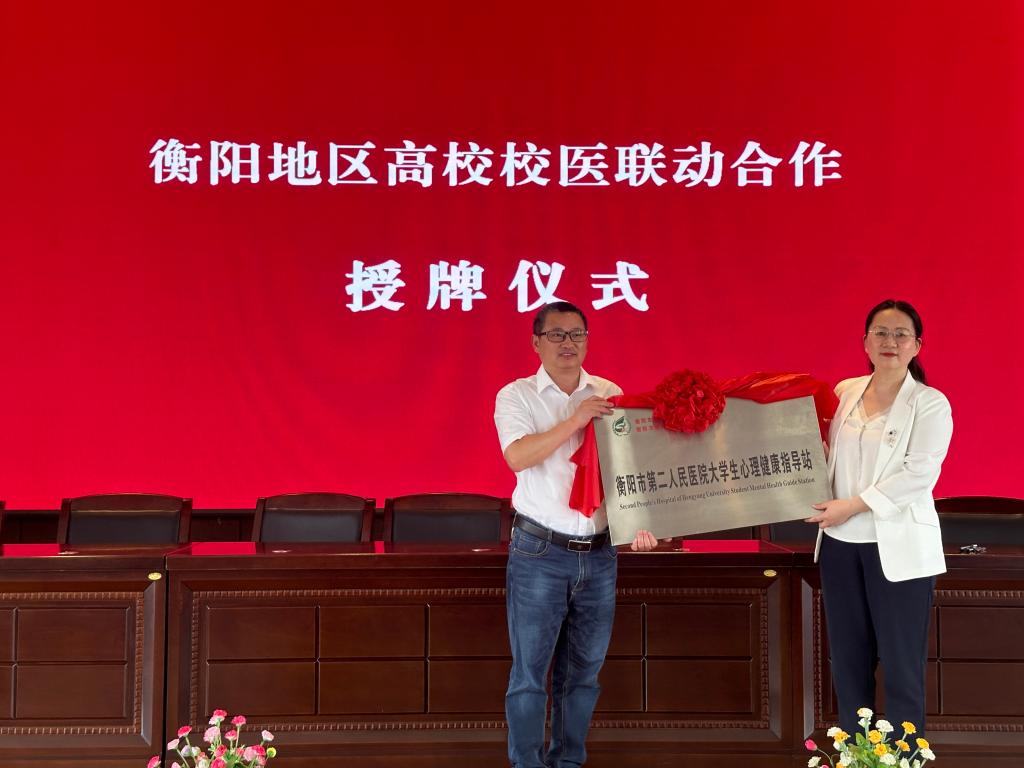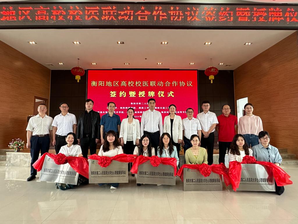 各高校分别与衡阳市第二人民医院签署医校合作协议,并共同为高校大学生心理健康教育指导站揭牌。