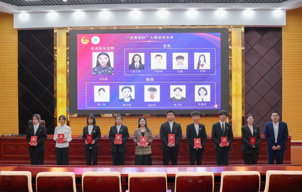 教务处副处长任长安为湖南省消费帮扶营销大赛获奖师生颁奖