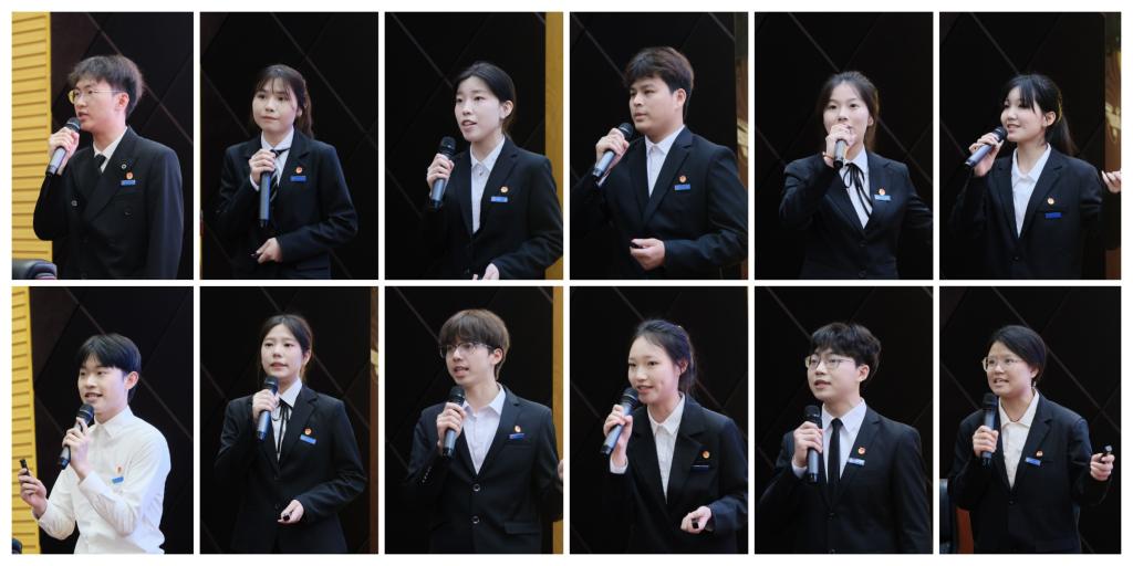 活动分两个阶段进行。第一阶段与会师生现场观摩了“挑战杯”校赛优秀项目展演。12个展演项目既是共青团科创实践育人成果,又充分体现了学校以“工”为主的办学特色。同学们把课堂所学与专业实践结合起来,把论文写在田野间、工厂里、大地上,将研究成果应用到社会经济发展的火热实践中。他们关注新质生产力,致力科技创新与未来产业;关注农居地震安全,筑牢生命防线,投身乡村振兴与农业农村现代化;关注土壤镉治理、抗生素水污染处理技术,致力生态文明建设和绿色低碳发展;关注工业固废堆积、开发智能系统,投身社会治理和公共服务。