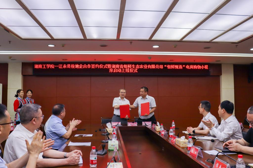 会上,与会领导一起启动了由我校科研团队研发的湖南恒鲜生态农业有限公司‘恒鲜甄选’电商购物小程序。通过“恒鲜甄选”电商购物小程序上线,大力宣传推介江永的特色产品、文旅资源,提升江永的知名度和影响力。