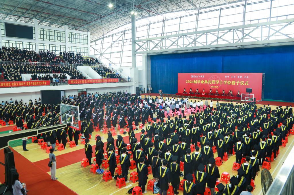 6月5日,我校2024届毕业典礼暨学士学位授予仪式在体育馆举行。全体在校校领导出席典礼,校学士学位评定委员会委员、相关职能部门负责人、各二级学院党政领导、毕业生辅导员、毕业生代表、部分毕业生家属等1700余人参加典礼,共同见证4782名毕业生自此远行、开启人生踏上新征程的荣耀时刻。毕业典礼由校党委副书记何建雄主持。