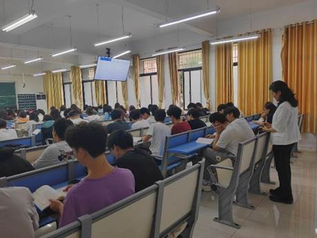 随后,王艳琼一行采取“分组巡课—自由听课”相结合的方式,重点对已记录的课堂进行了全覆盖巡课、看课,以深入了解教师信息化教学开展情况以及课堂教学情况,并将相关问题详细记录下来。在此期间,王艳琼一行利用课间时间走进教室,与部分任课老师进行了简短的交流,并提出了在课堂教学和管理工作方面的意见及建议。王艳琼指出,从此次巡查的情况来看,教学保障及各项安排到位,教室设施设备运行正常;教师教学准备充分,到课率高,课堂气氛比较活跃;教学秩序井然有序,各项保障措施到位,教学效果良好。但也存在一些问题:个别教室授课声音小、授课缺乏激情、板书少、课堂不活跃、缺乏师生互动环节等问题;极少数教师对课堂的监管不到位,存在教室前排学生较少、学生课堂上复习考研科目、玩手机、讲小话或者睡觉等现象;个别教室作为本学期期末提前考试的考场,存在监考过程不规范问题,如监考老师无实时监管考场、学生扎堆交卷等。