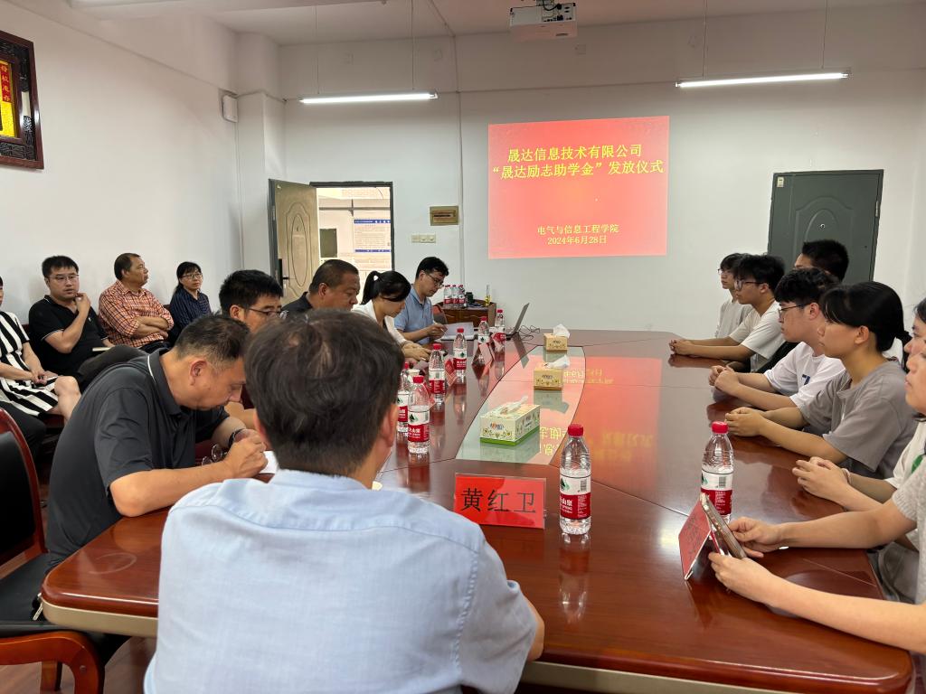 6月28日,“晟达励志助学金”发放仪式在电气与信息工程学院隆重举行。党委委员、副校长黄红卫出席了仪式,参加仪式的还有晟达信息技术有限公司代表庾洁雯女士,我校后勤处处长贺旭、副处长黄煜,电气与信息工程学院党政领导、部分教师以及受资助的学生。仪式由电气与信息工程学院书记俞斌主持。