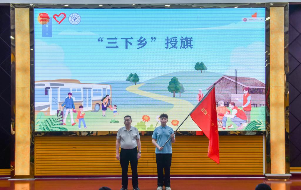 刘龙昌为“三下乡”社会实践团队授旗。