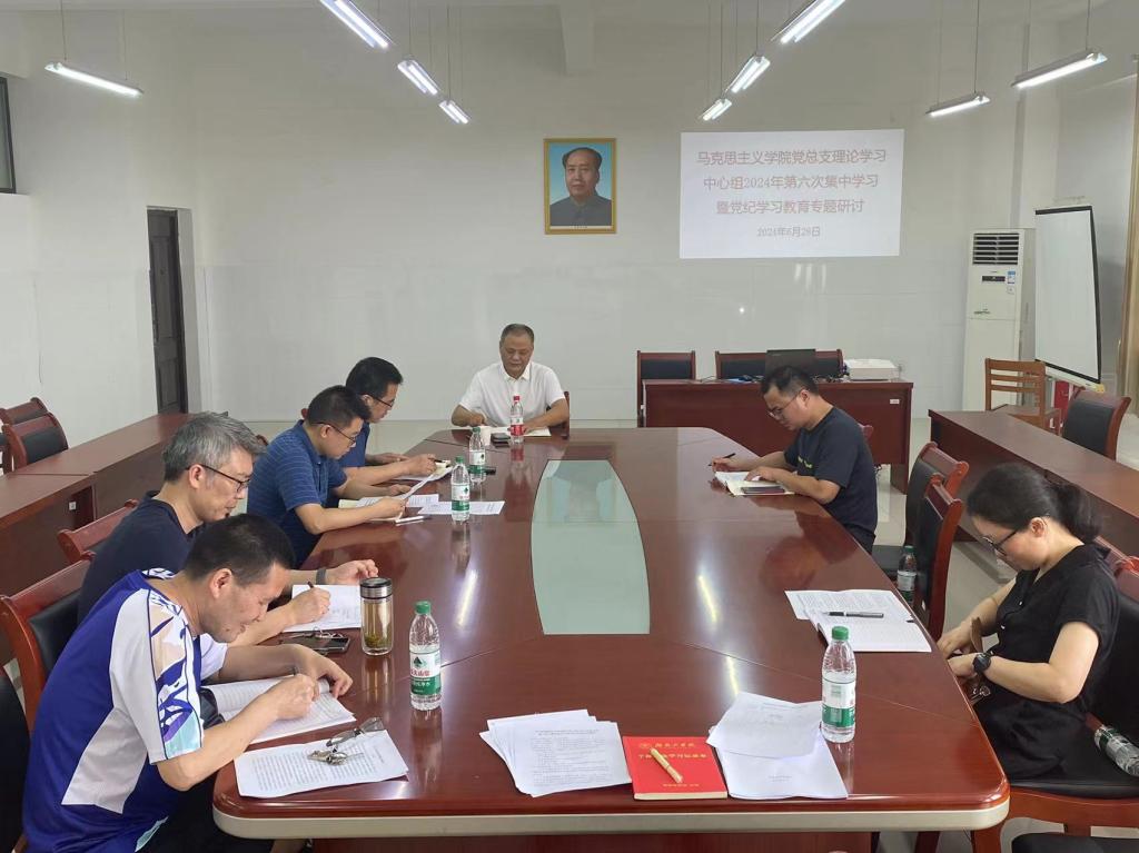 6月28日下午,马克思主义学院党总支在社科楼318会议室召开理论学习中心组2024年第六次集中学习暨党纪学习教育专题研讨会,校党委委员、副校长谢柯全程进行了巡听,院党总支理论学习中心组全体成员、各支部书记、全体科级干部参加了会议。会议由马克思主义学院党总支书记、院长张冬毛主持。
