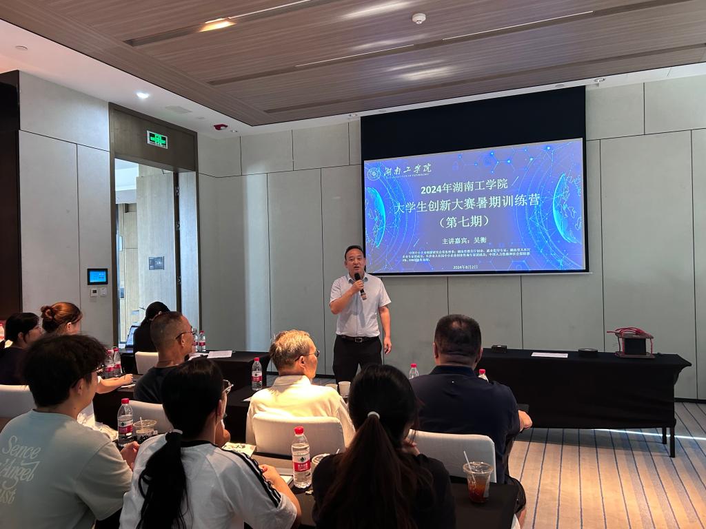 8月2日下午,校党委副书记、校长曾广胜,校党委副书记何建雄亲临我校大学生创新大赛暑期训练营第七期培训活动现场,对代表学校征战湖南省大学生创新大赛(2024)现场赛的优秀项目团队进行慰问和指导。