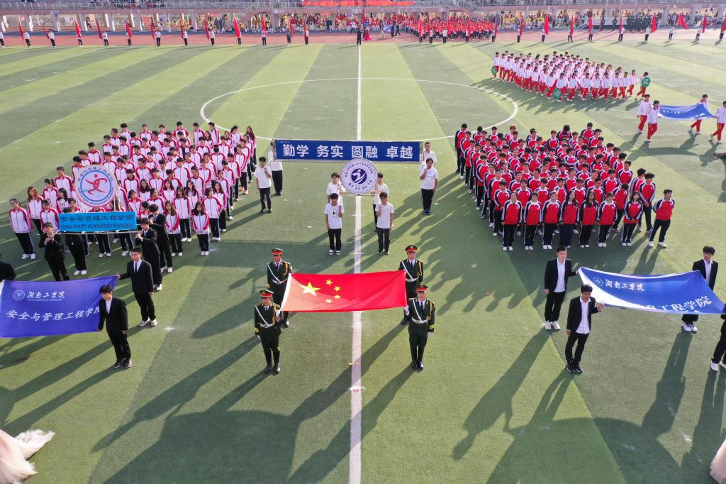 开幕式上,各代表队,踏着整齐的步伐,喊着响亮的口号依次走过主席台,传达着对这场体育赛事的期待。在开幕式表演环节,学校教导队演示的擒敌拳,拳风呼啸,气势如虹,一招一式都蕴含着千钧之力,尽显湖工学子风采。朝气蓬勃的排舞,热情洋溢的啦啦操,极具韵律和美感的健美操,让人感受到青春的无限魅力与热情。