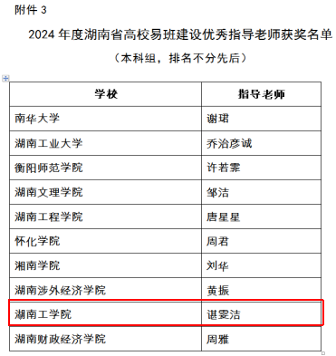 近日,湖南省高校易班发展中心公布了2024年度湖南省高校易班优秀评选获奖情况,全省一百余所高校参与评比角逐。我校突出重围,获评“湖南省高校易班建设先进单位”,《基于湖工榜样力量构建网络思政育人新生态》案例获评“湖南省高校易班建设优秀案例”,易班指导老师谌雯洁获评“湖南省高校易班建设优秀指导老师”荣誉称号。