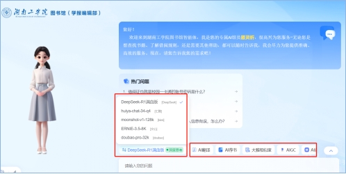 近日,图书馆携手学校智慧校园建设与管理中心,依托强大的DeepSeek大模型,重磅推出“AI检索+ AI馆员”创新服务体系,标志着我校图书馆在数字化转型与智慧服务创新中迈出重要一步。