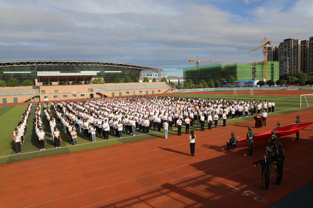 7月1日上午,在中国共产党成立104周年之际,学校在北运动场举行迎天安门国旗仪式。校党委书记曹执令将一面曾在天安门广场高高飘扬、承载着神圣使命的五星红旗,郑重交接给校国旗护卫队。来自全校的师生代表1200余人共同见证了这一庄严时刻。仪式由校党委副书记何建雄主持。
