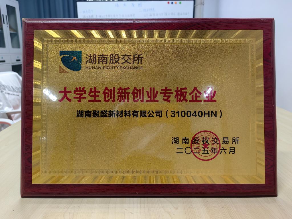 5月30日,湖南股权交易所印发《入板通知书》,我校大学生创业企业——湖南聚醛新材料有限公司通过审核,在湖南股权交易所大学生创新创业专板挂牌,标志着我校大学生创新创业工作再上新台阶。