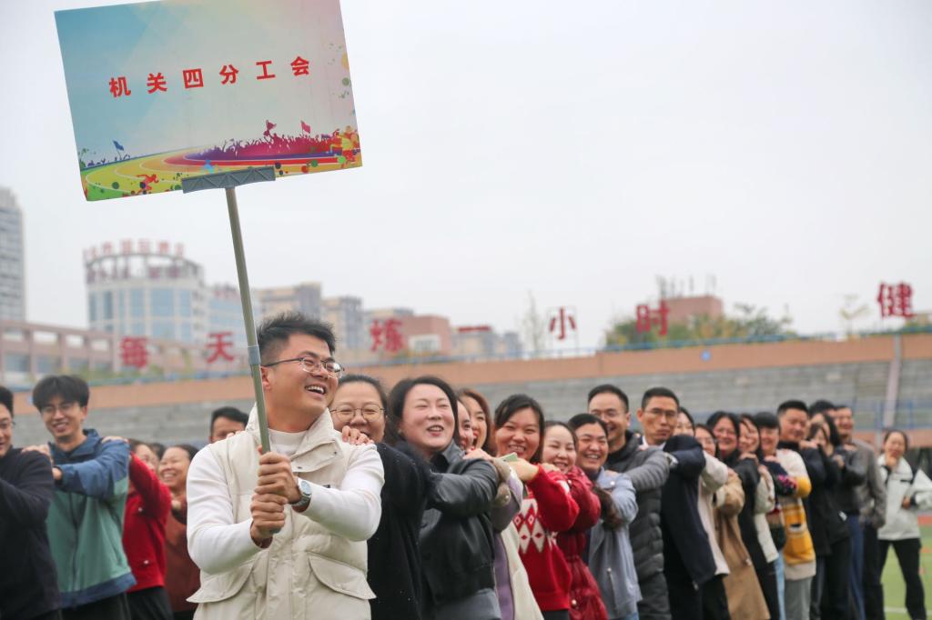 本届运动会以“趣享运动 凝心聚力”为主题,设置了团队汉诺塔、铁甲战车、万众一心、趣味投篮、喜获丰收等五项富有趣味性和协作性的团队项目。经过激烈角逐,体育教学科研部分工会、机关三分工会、安全与管理工程学院分工会、材料科学与工程学院分工会、智能制造与机械工程学院分工会、化学与环境学院分工会、机关五分工会、马克思主义学院分工会、商学院分工会、设计艺术学院分工会获得团体总分前八名。