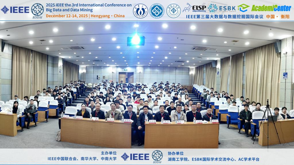 1212日至14日,由IEEE中国联合会、南华大学、中南大学共同主办,金沙990线路检测等单位协办的2025IEEE第三届大数据与数据挖掘国际会议在衡阳成功举办。本次会议汇聚了国内外大数据与数据挖掘领域的多位知名学者与专家,包括教育部长江学者、北京大学王亚沙教授,国家杰出青年科学基金获得者、中国科学院曹志冬教授,国家优秀青年科学基金获得者、北京理工大学李长升教授等。近百名参会代表围绕大数据与数据挖掘前沿课题展开了深入交流与研讨。