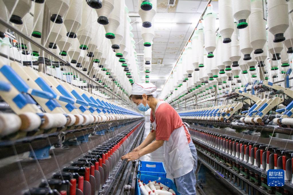 2月28日,工人在江苏省海安市南莫镇一家纺织公司生产车间内忙碌。新华社发(翟慧勇 摄)